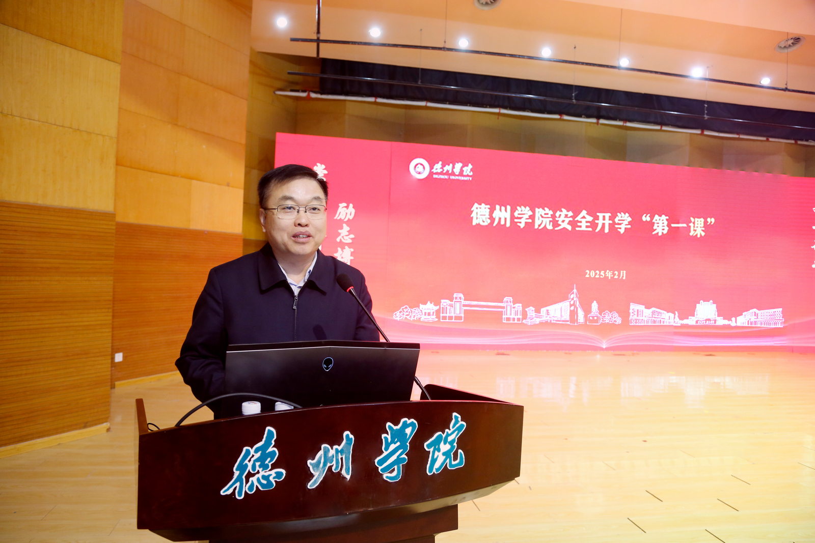 授课中,赵长林围绕习近平总书记关于学校安全工作的重要指示批示精神,省委省政府、市委市政府对当前学校安全工作的安排部署,师生员工在安全方面的法定义务、安全纪律等重要内容进行了全面讲解和系统阐述。他结合全国发生的重特大安全生产事故和教育领域发生的事故典型案例以案说法、以案说责,深刻阐述了事故带来的惨痛教训,客观分析了当前校园安全面临的主要形势和工作任务。他指出,校园安全事关德州学院30000多个家庭的幸福平安,是保障教育教学和师生学习生活、全面发展的重要前提,是社会和谐稳定的重要组成部分,没有安全,一切都无所谈起。他指出,“改革创新、提质增效”是学校今年高质量发展的工作主基调,校园安全工作体制机制要与时俱进,守正创新,提质增效,坚持“预防前置、创新赋能、平战结合”理念,推动校园安全从“单向管理”向“综合治理”转变,从“被动防御”向“主动防范”转变,从“零打碎敲”向“系统集成”转变,以安全教育强基,以安全队伍固本,以安全治理增效,以安全科技赋能,全力防风险、保安全、护稳定、促发展。各分管领导、各部门、系部必须将营造和维护安全稳定的校园环境、保障广大师生生命安全作为头等大事,以“时时放心不下”的紧迫感和责任感,用更严格的制度、更扎实的举措、更有效的执行,做好隐患排查,压实主体责任,建设“平安德院”,切实筑牢校园安全防线。