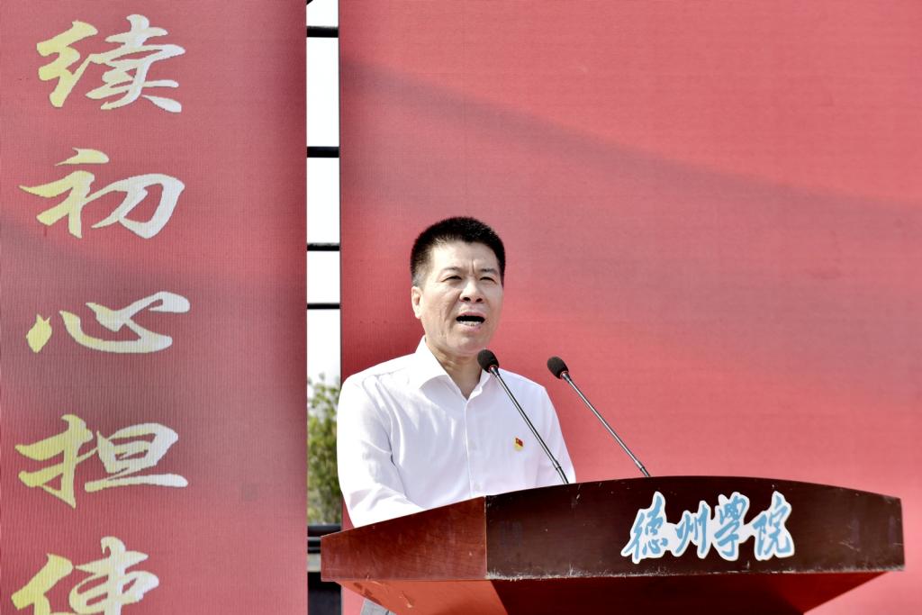 吴君指出,此次校地首次共同举行的一体化大中小学生入党入团入队集中宣誓活动,是德州市委、德州学院党委推动党建工作引领共青团工作、少先队工作同频共振的重要载体,是德州学院牢记“为党育人、为国育才”的使命,充分发挥高等教育在学校思政教育中的龙头作用,构建贯穿青少年成长成才全过程的党团队一体化阶梯式培养体系,确保党的事业薪火相传的又一次创新探索。希望同学们以忠诚之心立根固本,感党恩、听党话、跟党走,在学思践悟中坚定“四个自信”;希望同学们以进取之心勤学笃行,在求知问学中锤炼本领,在知行合一中担当作为;希望同学们以奉献之心服务人民,心怀“国之大者”,在科技创新、乡村振兴、服务社会中挺膺担当。