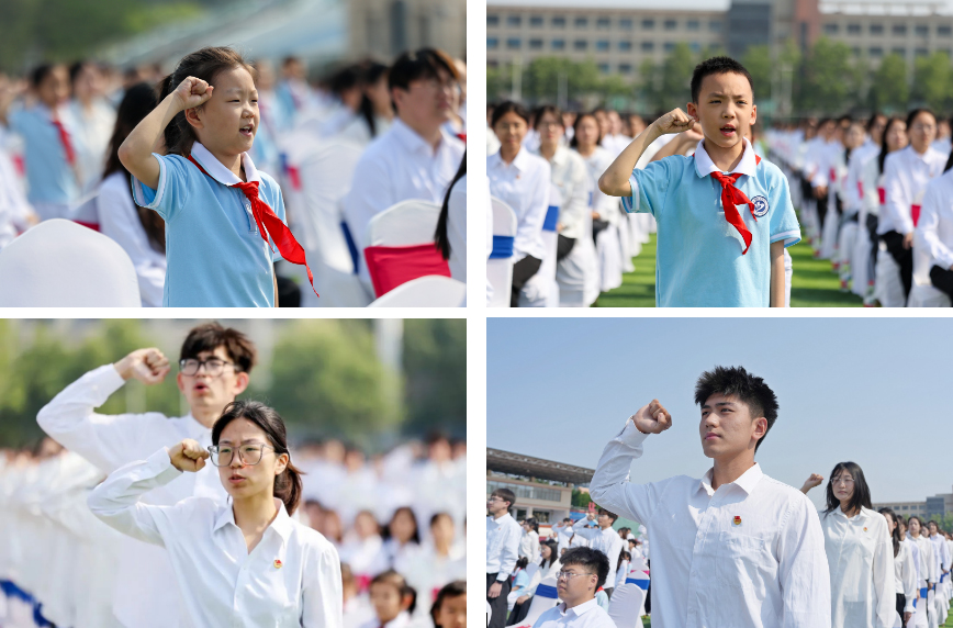 活动在庄严的国歌声中拉开帷幕。护卫队员迈着铿锵有力的步伐,护送党旗、团旗、队旗庄严入场。300名新发展党员、300名新发展团员、300名新入队队员代表集体献词,以青春之声礼赞伟大时代。
