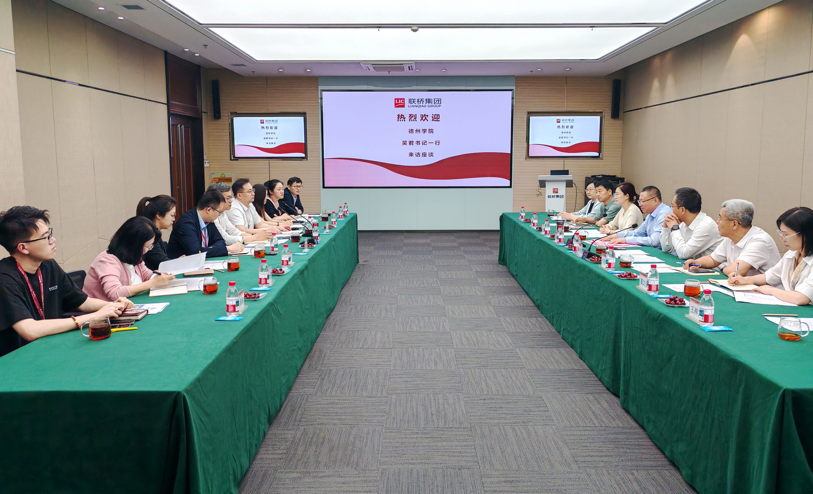 在威海市,吴君一行先后赴威海新佳电子有限公司和山东联桥集团有限公司开展对接。新佳电子着重介绍了企业经营现状与产业规划布局;联桥集团则通过实地展示生产环境、核心业务板块及创新成果,与校方就人才联合培养、校园招聘、双向赋能等方面达成多项共识,现场举行了就业基地揭牌和就业导师聘任仪式。