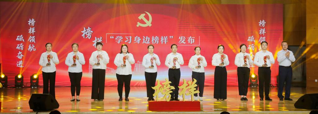 校党委书记吴君为2025年“学习身边榜样”榜样人物和团队颁发纪念奖杯。