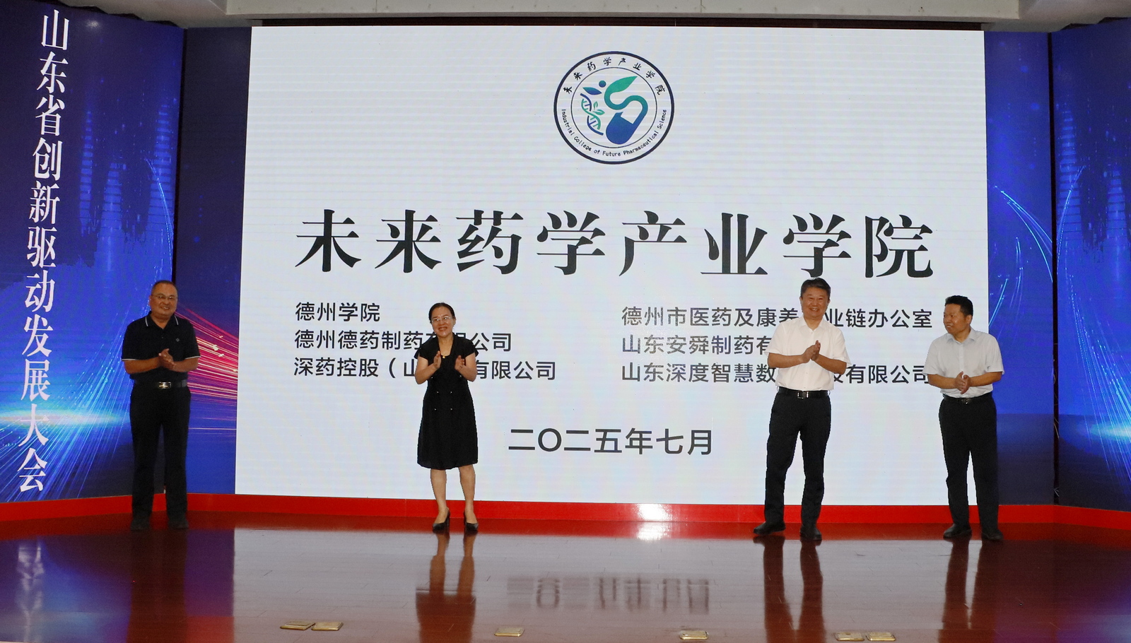 7月26日上午,政产学研合作激活生物医药新质生产力会议暨未来药学产业学院成立大会在德州市柳湖书院酒店举办。此次会议是2025山东省创新驱动发展大会系列活动之一,由德州市科学技术协会、德州学院药学院、德州市医药及康养产业链办公室联合主办,上海甘泓生物医学科技有限公司、深药控股(山东)有限公司等7家企事业单位协办。我校党委委员、副校长徐静,德州市科学技术协会、卫生健康委员会、发展和改革委员会相关职能部门负责人,来自清华大学、武汉大学等11所高校及研究院知名专家,德州市医养健康股份有限公司等7家企业代表及我校药学院全体师生百余人参加会议。