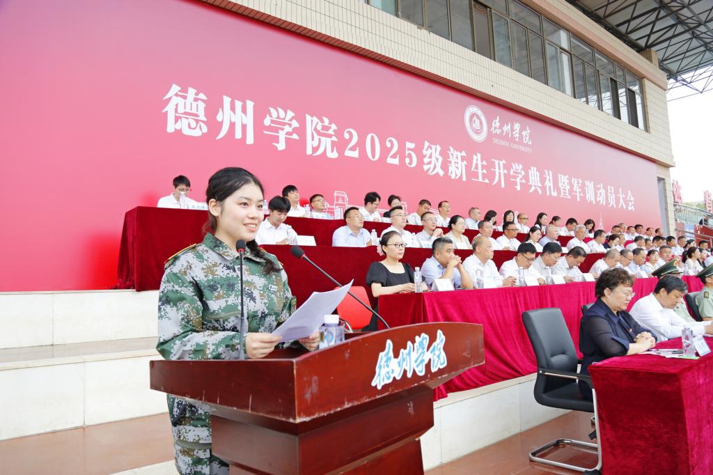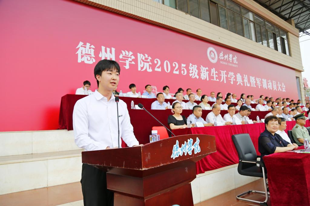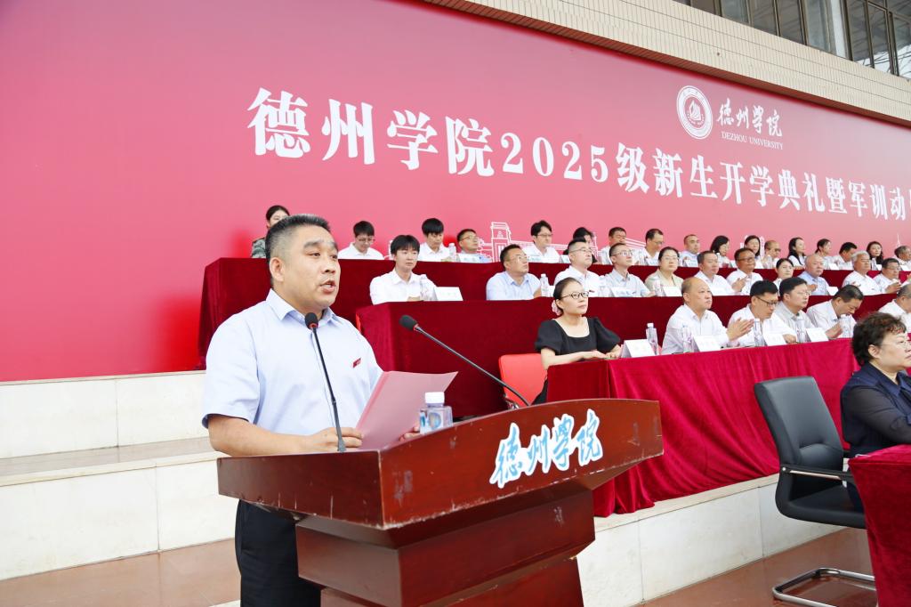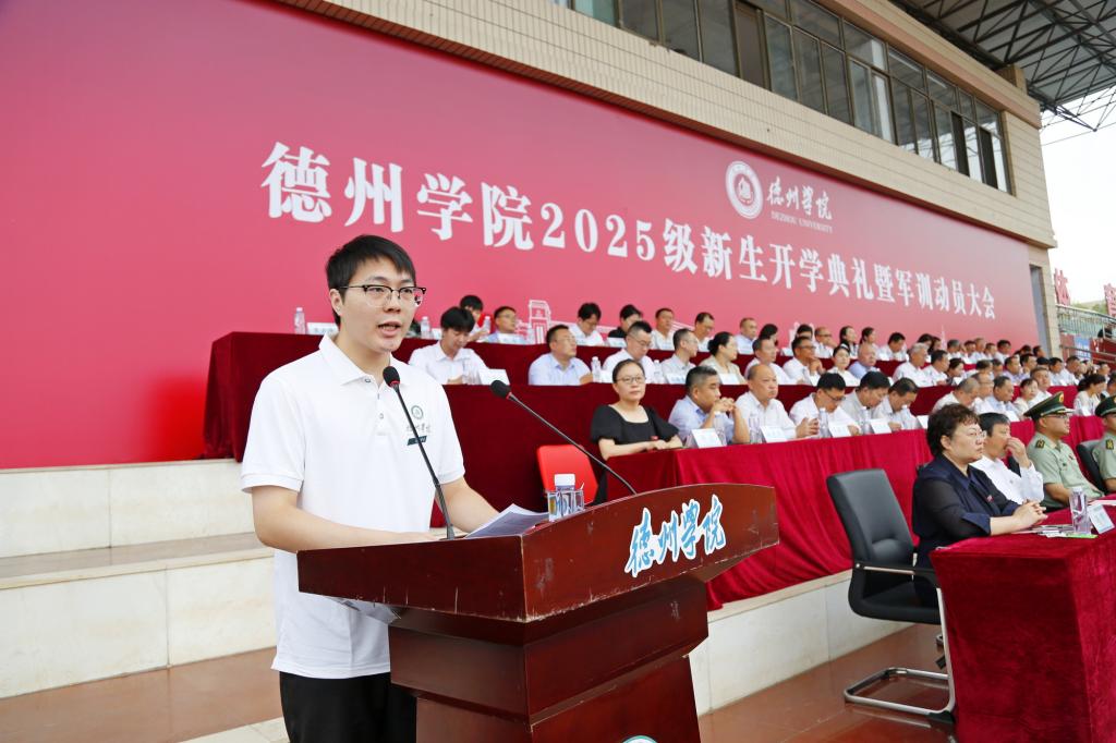 金秋九月,硕果累累,叠翠流金。9月8日,德州学院2025级新生开学典礼暨军训动员大会举行。校党委书记吴君,党委副书记、校长赵长林等党委班子成员出席典礼。来自全国23个省市自治区的8988名本专科生、38名首届硕士研究生将在美丽的德院开启崭新的人生旅程。党委副书记张存峰主持典礼。