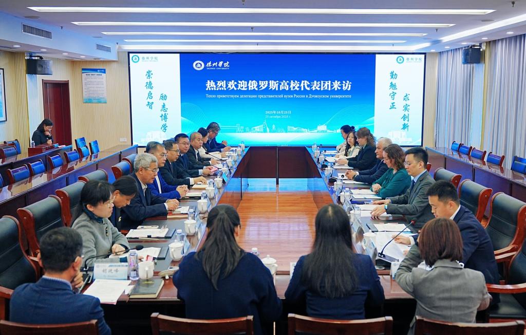 赵长林对俄罗斯高校代表团的来访表示热烈欢迎。他简要介绍了学校的基本情况和国际合作交流情况,他表示,学校始终将对俄合作作为国际化办学的重点方向和战略支点。目前,已与别尔哥罗德国家研究型大学等一批高水平院校建立了实质性合作关系,合作层次不断深化、形式日益多元。希望以此次俄罗斯高校代表团来访为契机,在本科生学分互认、博士研究生联合培养以及学科建设、科研合作、师生互访等领域加强合作,探索硕博贯通培养模式,在教育、机械制造、俄语教学、艺术领域等学科领域能够达成实质性合作项目。他诚挚邀请俄罗斯优秀青年来德州学院访学交流,亲身感受真实、立体的中国,共同为深化中俄新时代全面战略协作伙伴关系建设贡献青春力量。