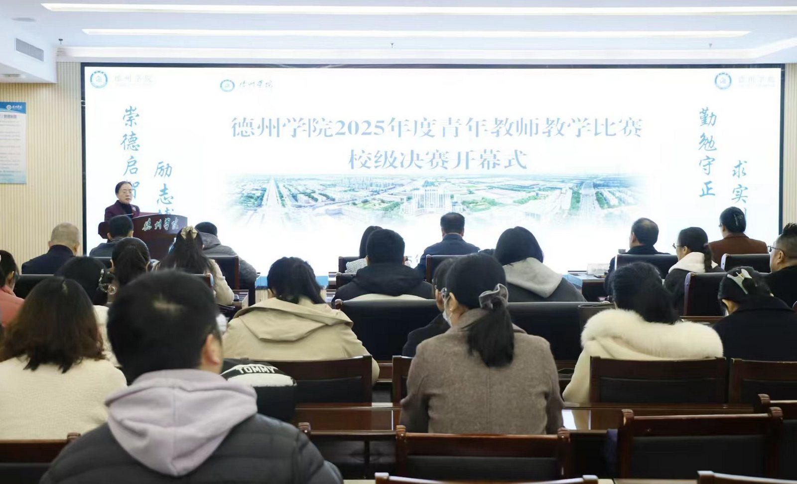 11月11日,德州学院2025年度青年教师教学比赛校级决赛在厚德楼举行。30名教师分工科组、理科组、文科组同步比赛,首次全程实时直播,线上观看量达7000余次,展现了我校青年教师的教学风采。党委副书记、校长赵长林出席开幕式并讲话,评选专家代表现场发言,党委委员、副校长徐静主持开幕式。
