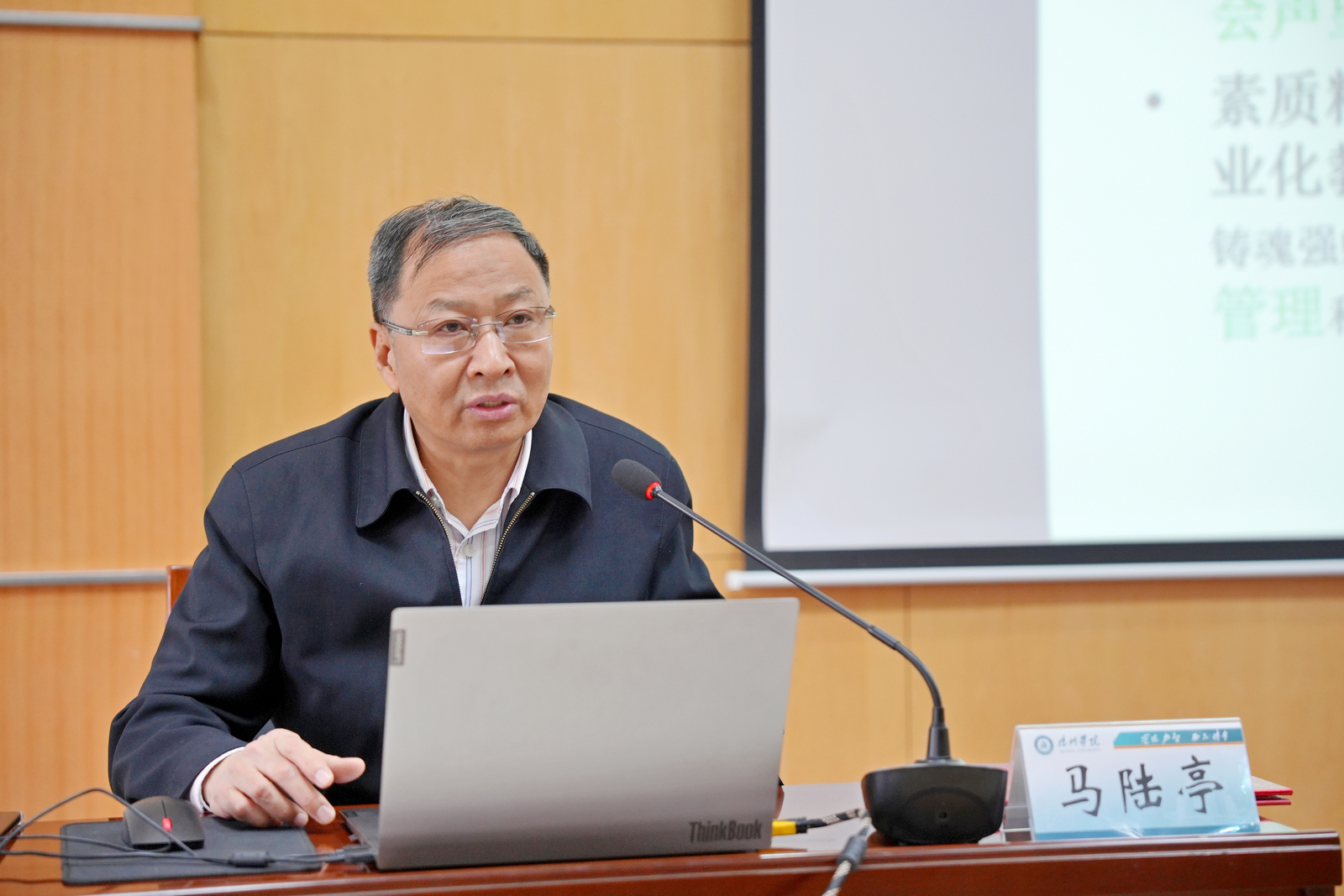 马陆亭作了题为《弘扬教育家精神 促进教师专业发展》的专题讲座。讲座内容以教育家精神为引领,通过“五维立体”的学术建构,全景式勾勒了新时代教师发展的战略图谱。从铸魂强师的教育家精神内核,到“升维”发展的时代命题;从教育强国建设的深层逻辑解构,到高等教育系统性变革的前瞻研判,最终聚焦教师专业发展的实践进路。既构建了新时代教师发展的理论坐标系,又铺设了教育家精神落地生根的实践路径,为我校建设新时代高素质专业化教师队伍提供了重要理论参照和实践指南。