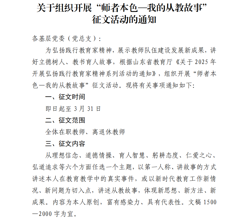 关于组织开展“师者本色—我的从教故事” 征文活动的通知