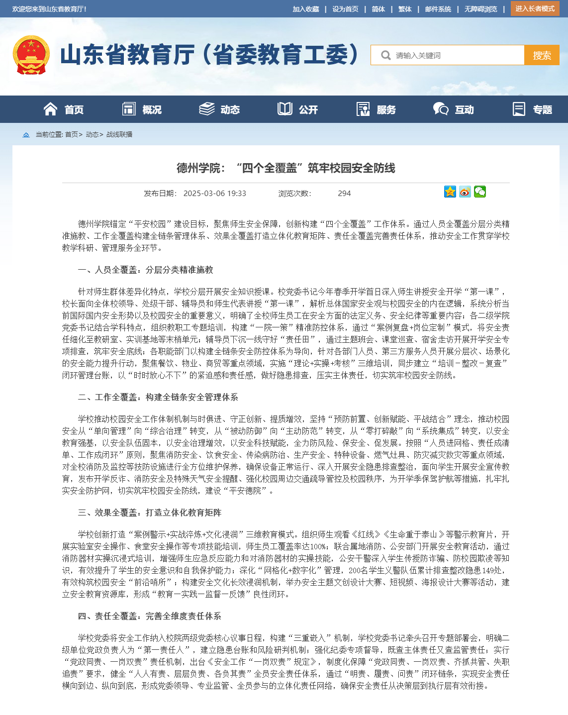 【山东省教育厅】德州学院:“四个全覆盖”筑牢校园安全防线