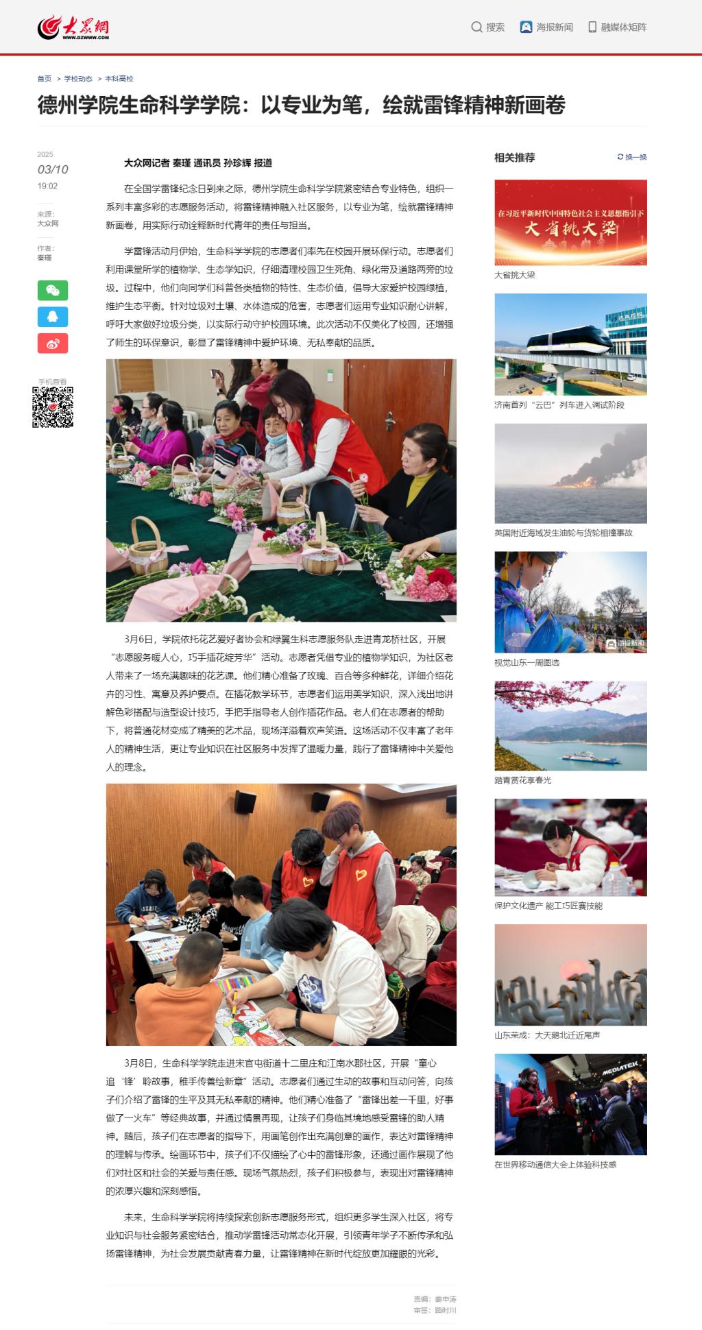 【大众网】德州学院生命科学学院:以专业为笔,绘就雷锋精神新画卷