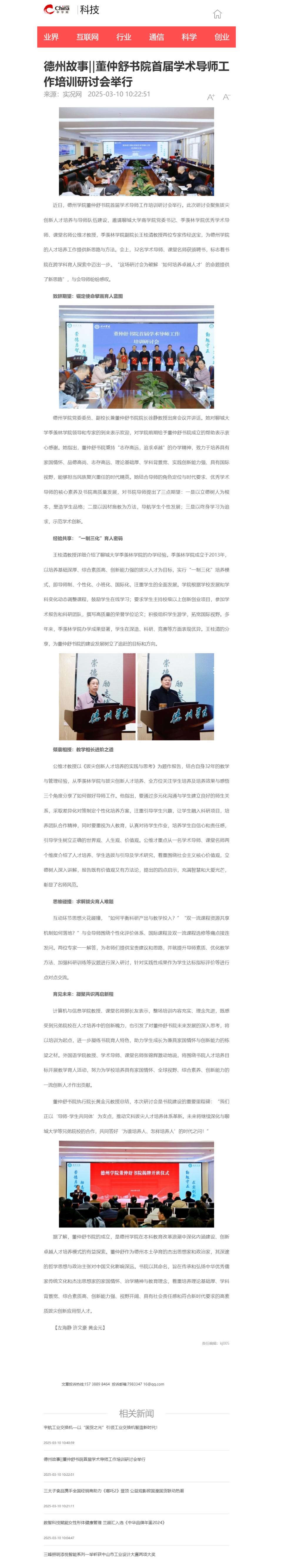 【中华网】德州故事‖董仲舒书院首届学术导师工作培训研讨会举行