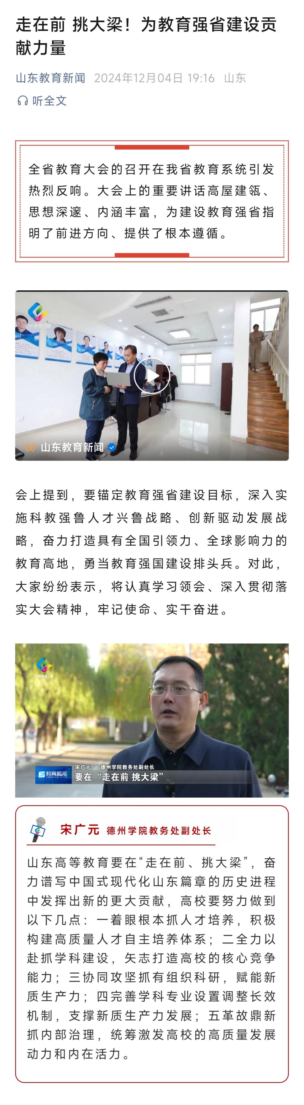 【山东教育新闻】走在前 挑大梁!为教育强省建设贡献力量