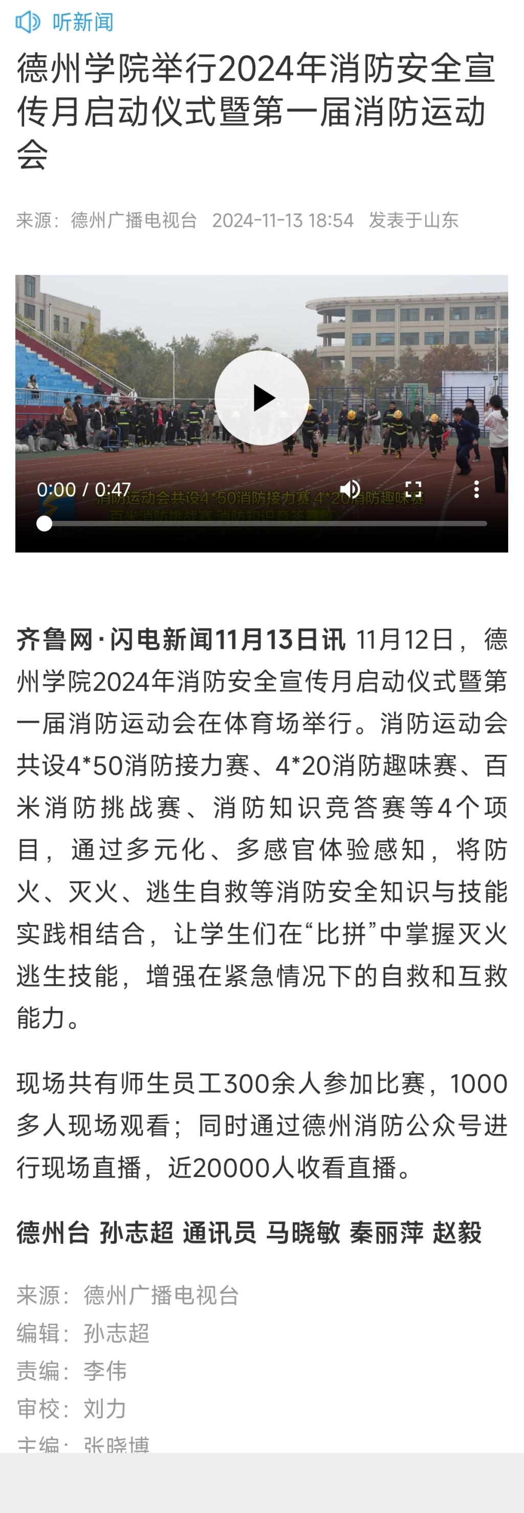 【齐鲁网】德州学院举行2024年消防安全宣传月启动仪式暨第一届消防运动会
