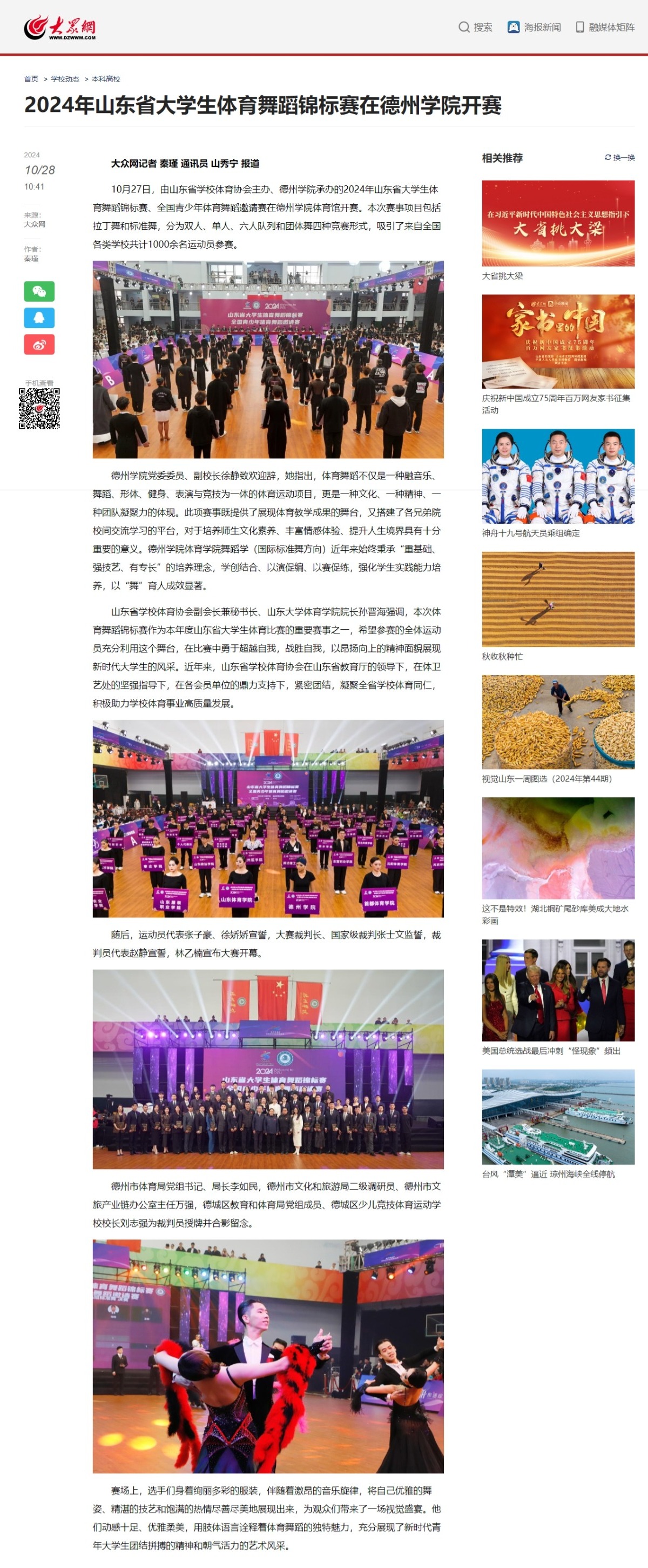 【大众网】2024年山东省大学生体育舞蹈锦标赛在德州学院开赛